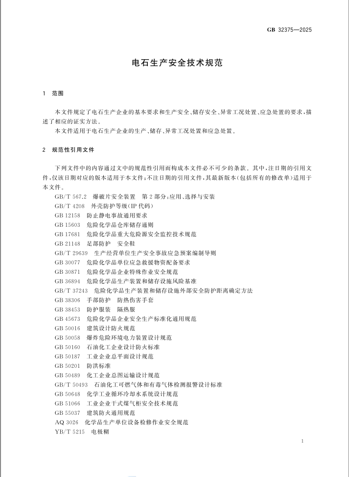 GB 32375-2025 電石生產(chǎn)安全技術(shù)規范